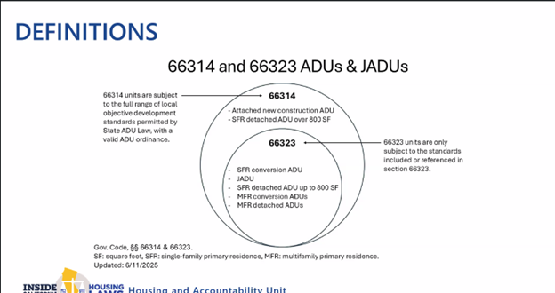 After updating the statewide ADU Handbook, the California Department of Housing & Community Development (HCD) hosted two town halls clarifying some of these rules. Below are some screenshots and the Q&A cut-and-paste from the Zoom session but watch the video for the key details.
